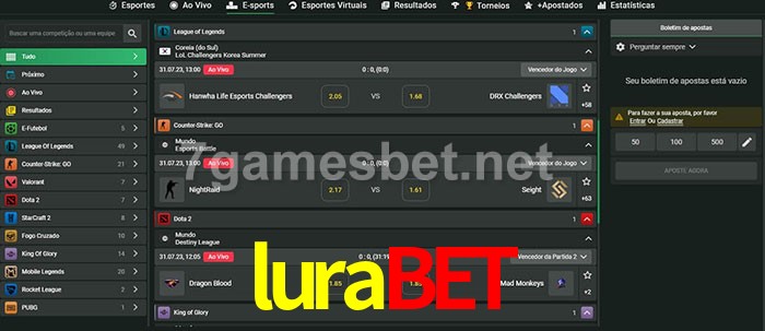 O lurabet oferece uma grande seleção de opções de apostas em e-sports com probabilidades competitivas